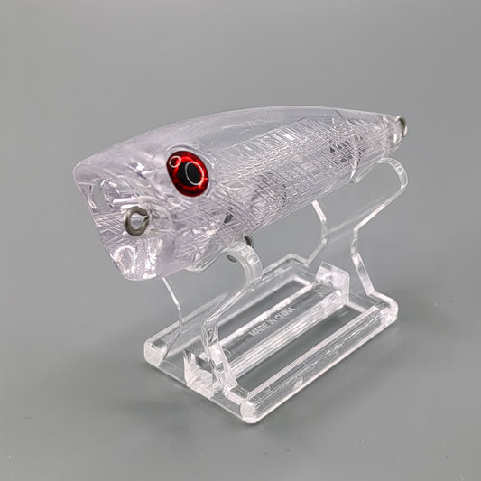 The Plastic on this bait was not clear. It was yellow and the bill was very weak. The paint went on without an issue but not sure about the bill.