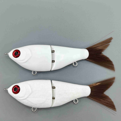 Craft custom swimbaits with the White 2-Section Unpainted Glide Swimbait Lure Blank. Perfect swimbait blanks and glide bait blanks for designing unique unpainted lure blanks.